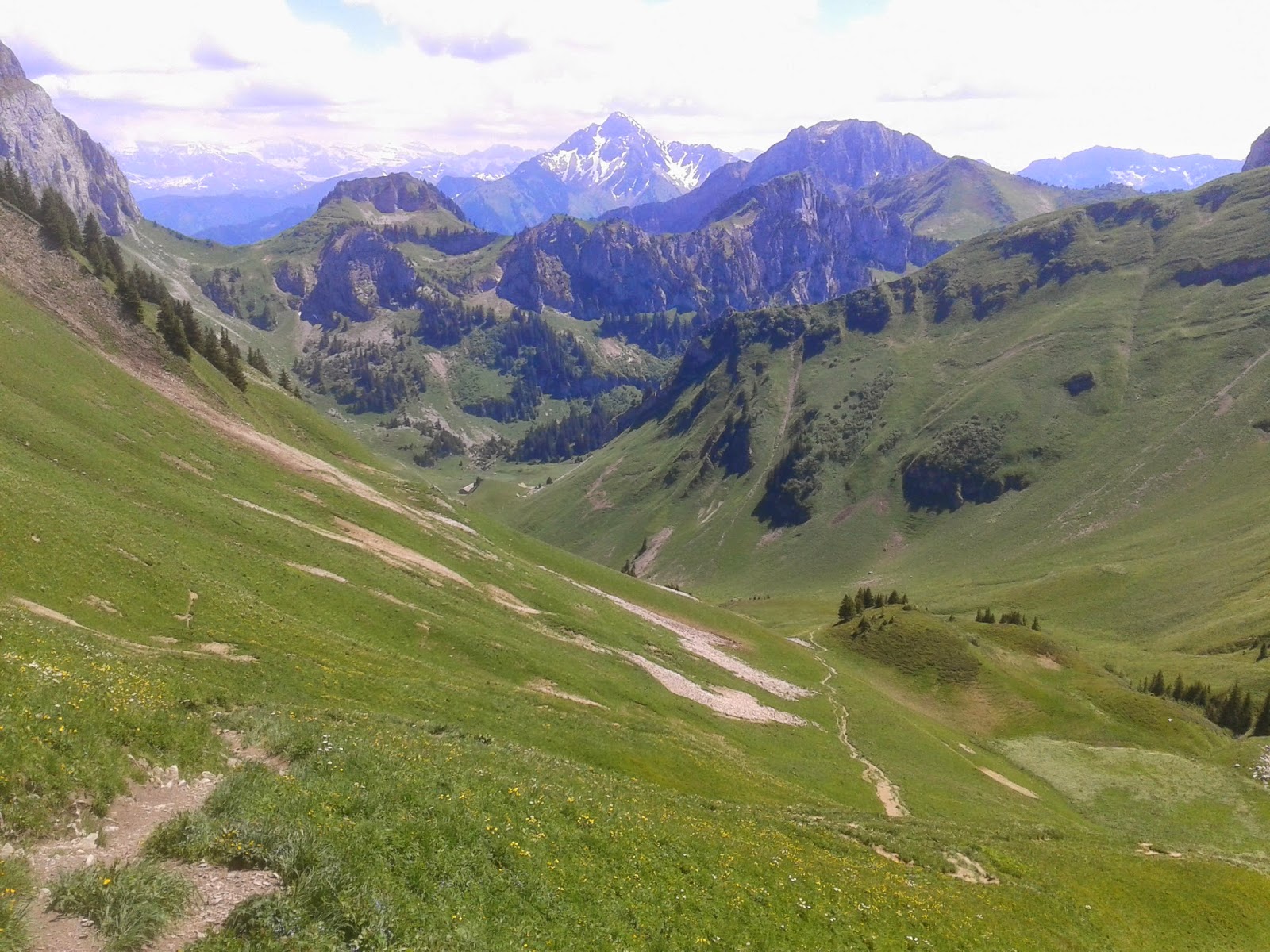 Arrivé au refuge CAF de Bise, II n'est que 16h, et je me pose la question si je continue jusqu'à La Chapelle d'Abondance (2h30 d'après les panneaux, avec 300m à monter et 800 à descendre); il est vrai que j'ai déjà parcouru 1500m en montée et 400m en descente mais je me sens bien. Finalement, je reste, le paysage est si beau (pour Denis et Martine, accessible en camping-car, coordonnées N46º19,83' E6º45,92').